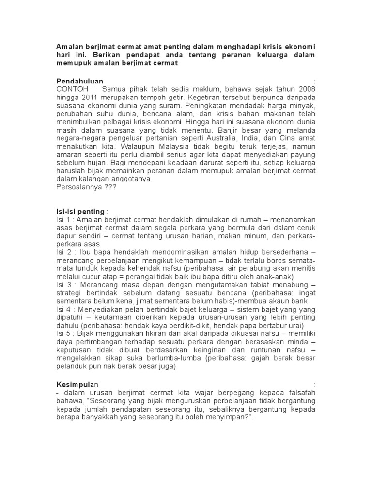 BERJIMAT CERMAT AMALAN MULIA. Amalan berjimat cermat besar faedahnya kepada individu dan negara semua pihak perlu menjadikan amalan ini sebagai satu keperluan dalam hidup bagi menjamin. Karangan Kepentingan Amalan Berjimat Cermat.